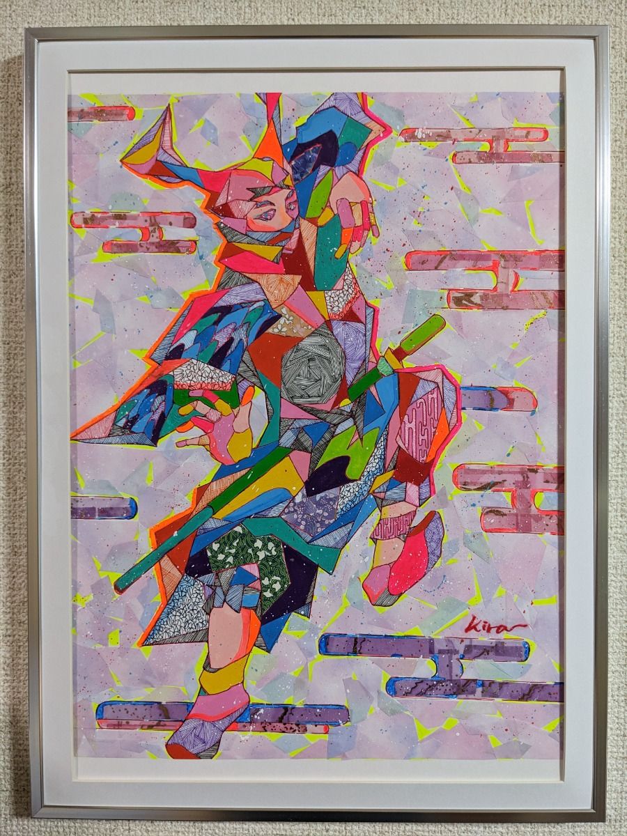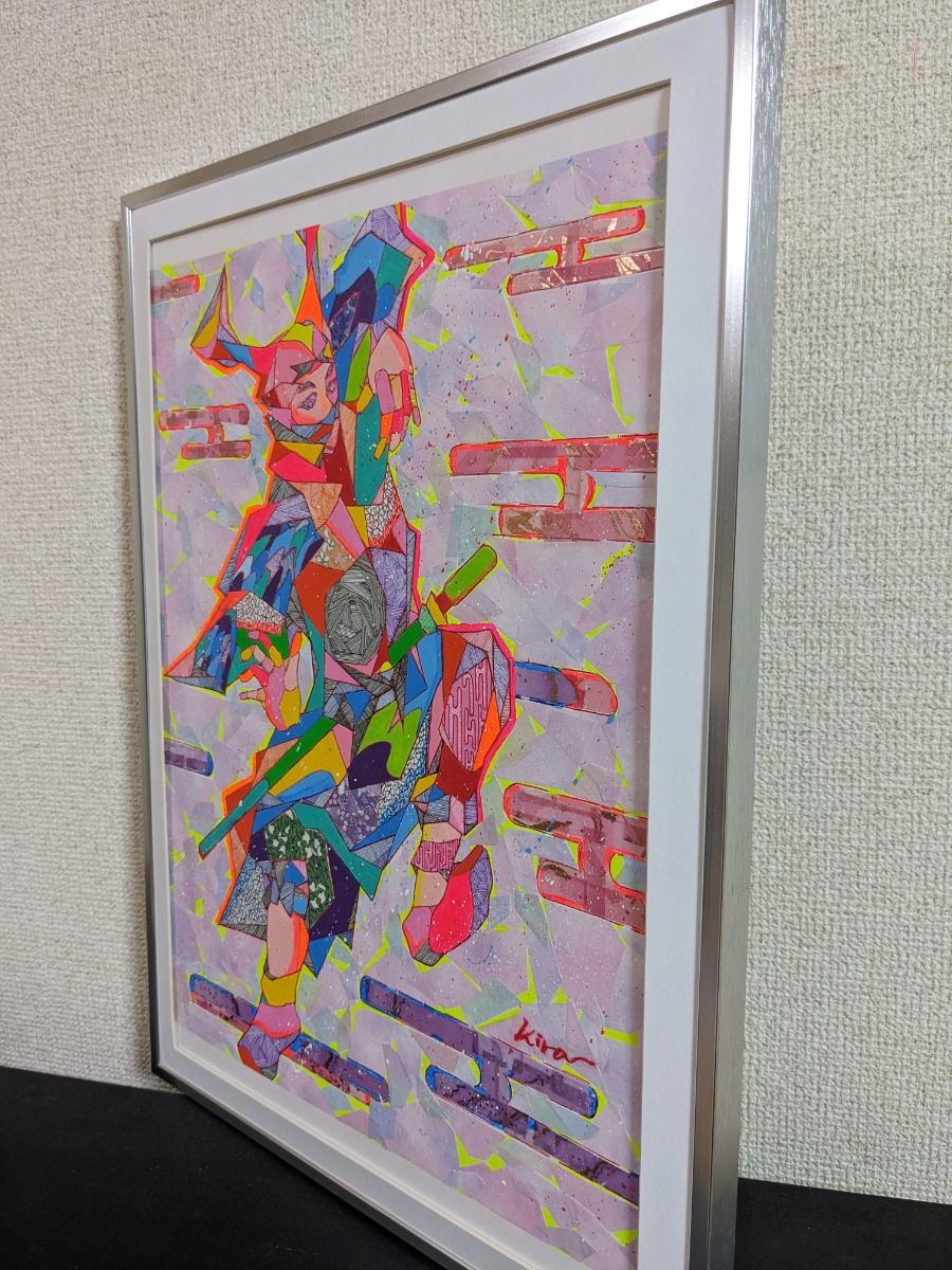 ダイナミックなデザインが、侍の誇りとその深い精神を伝える力を感じさせると思います。 新品のアルミ製の額も付いていますので、すぐに飾れます。アクリル板とマットもセットになっています。 絵のサイズはA3で、オリジナル原画の一点物です