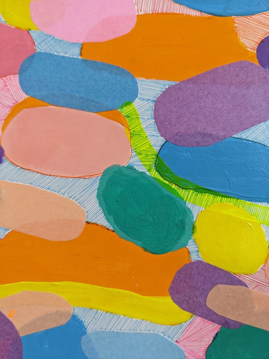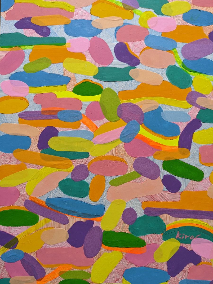 春の訪れを感じさせる生命感あふれる抽象画です。