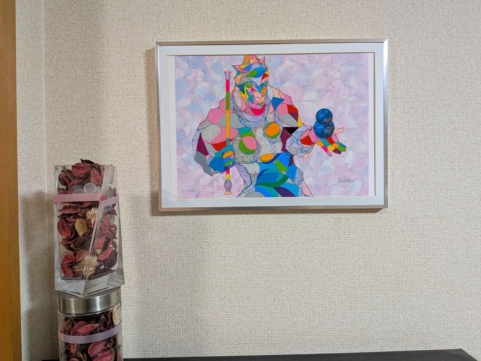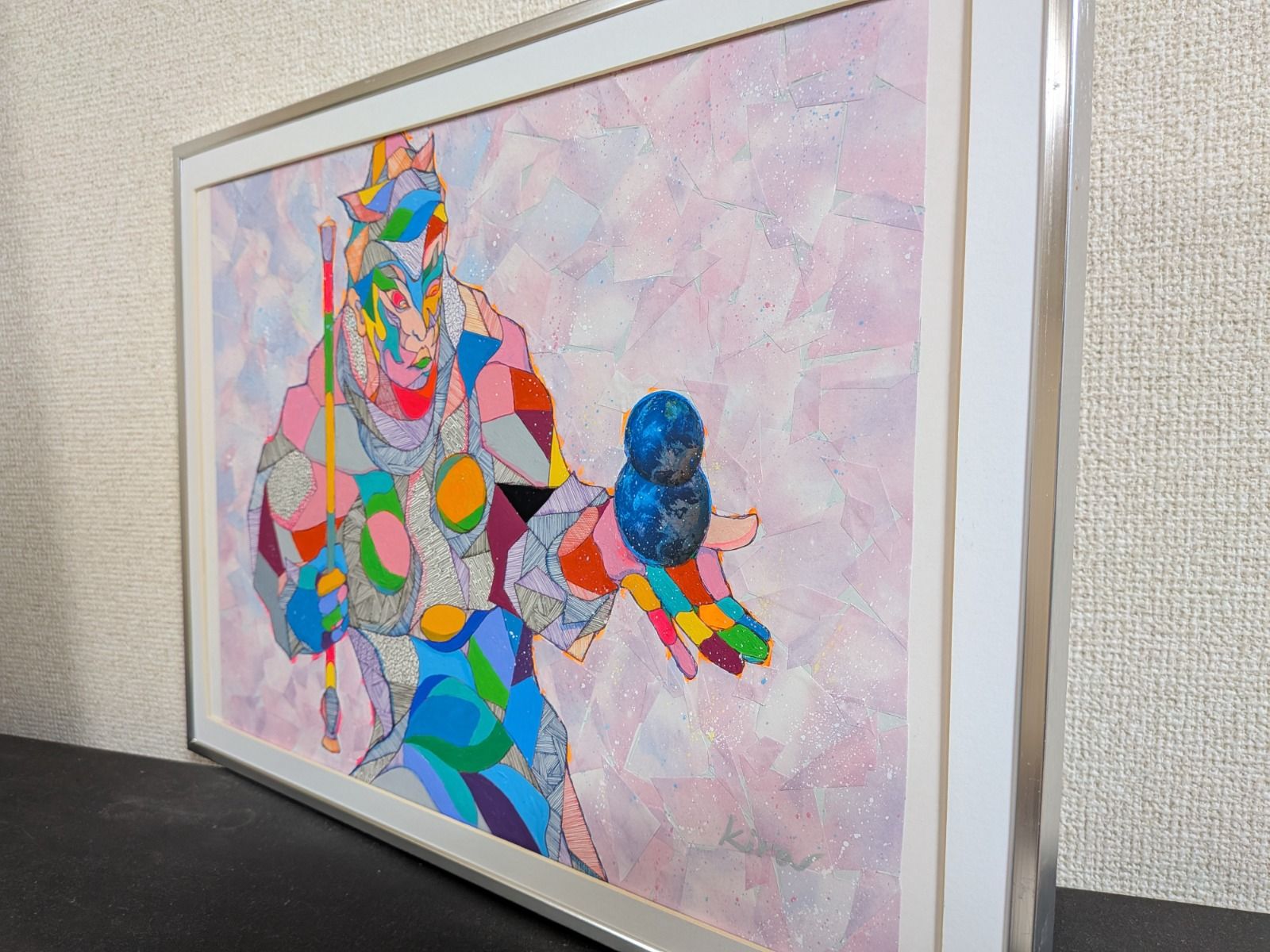 絵のサイズはA3、オリジナル原画1点ものです。 額も付いていますのですぐに飾ることもできます。