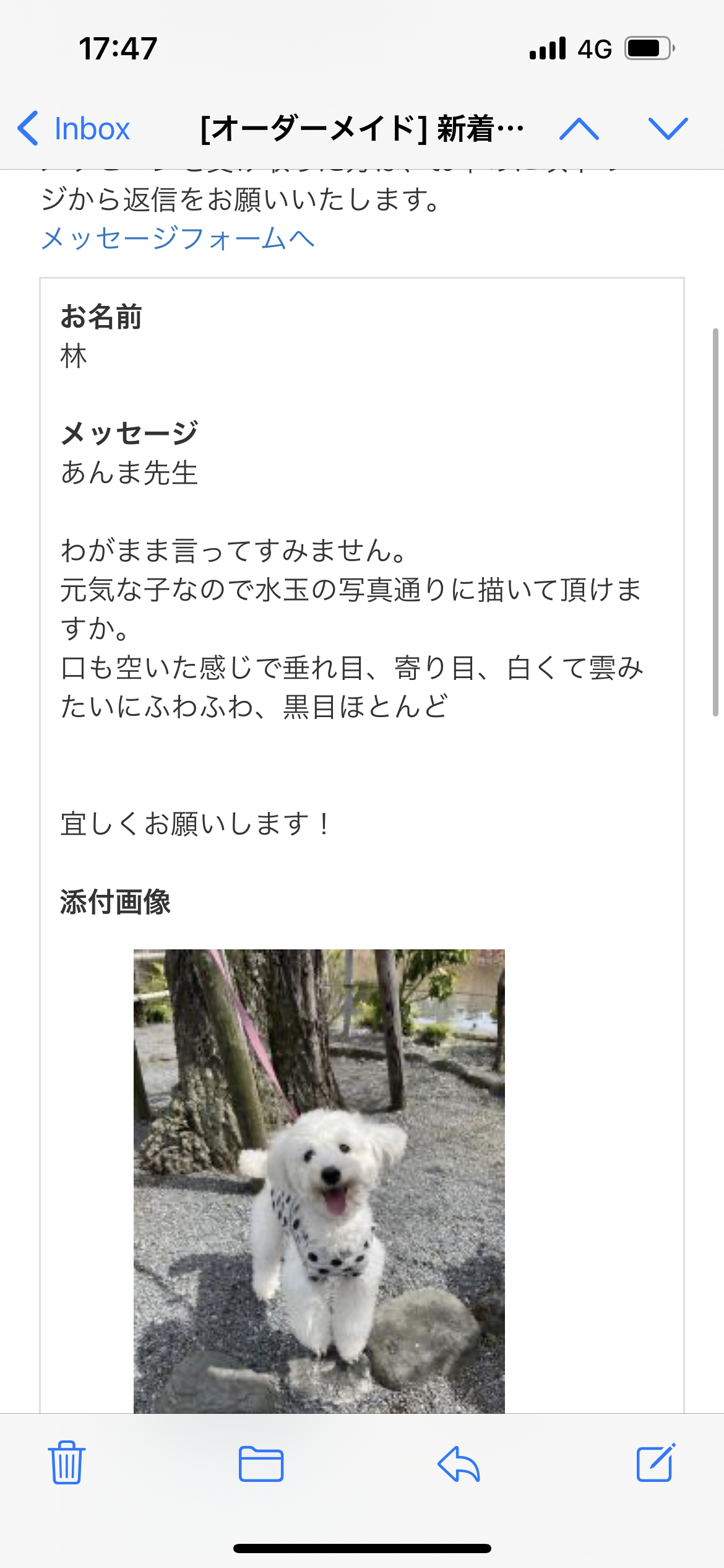 オーダーメイド作品の詳細について、作家さまとご注文者さま同士でメッセージを送り合うためのフォームです。
