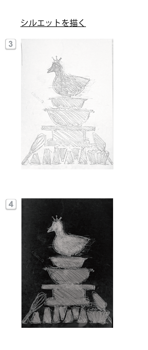 2番の絵で本番に近いサイズと画材でラフを制作していただいく提案、良いですね^_^