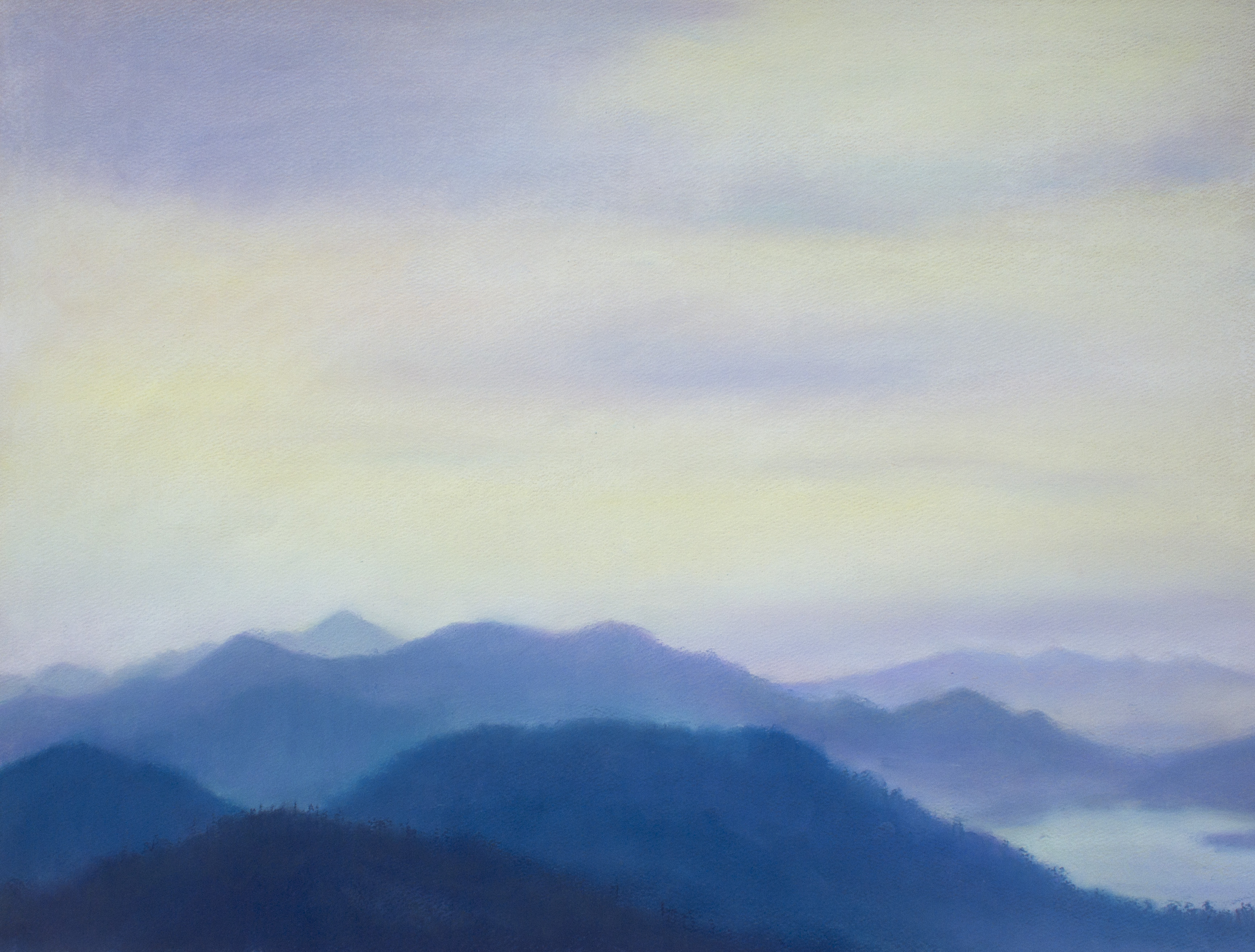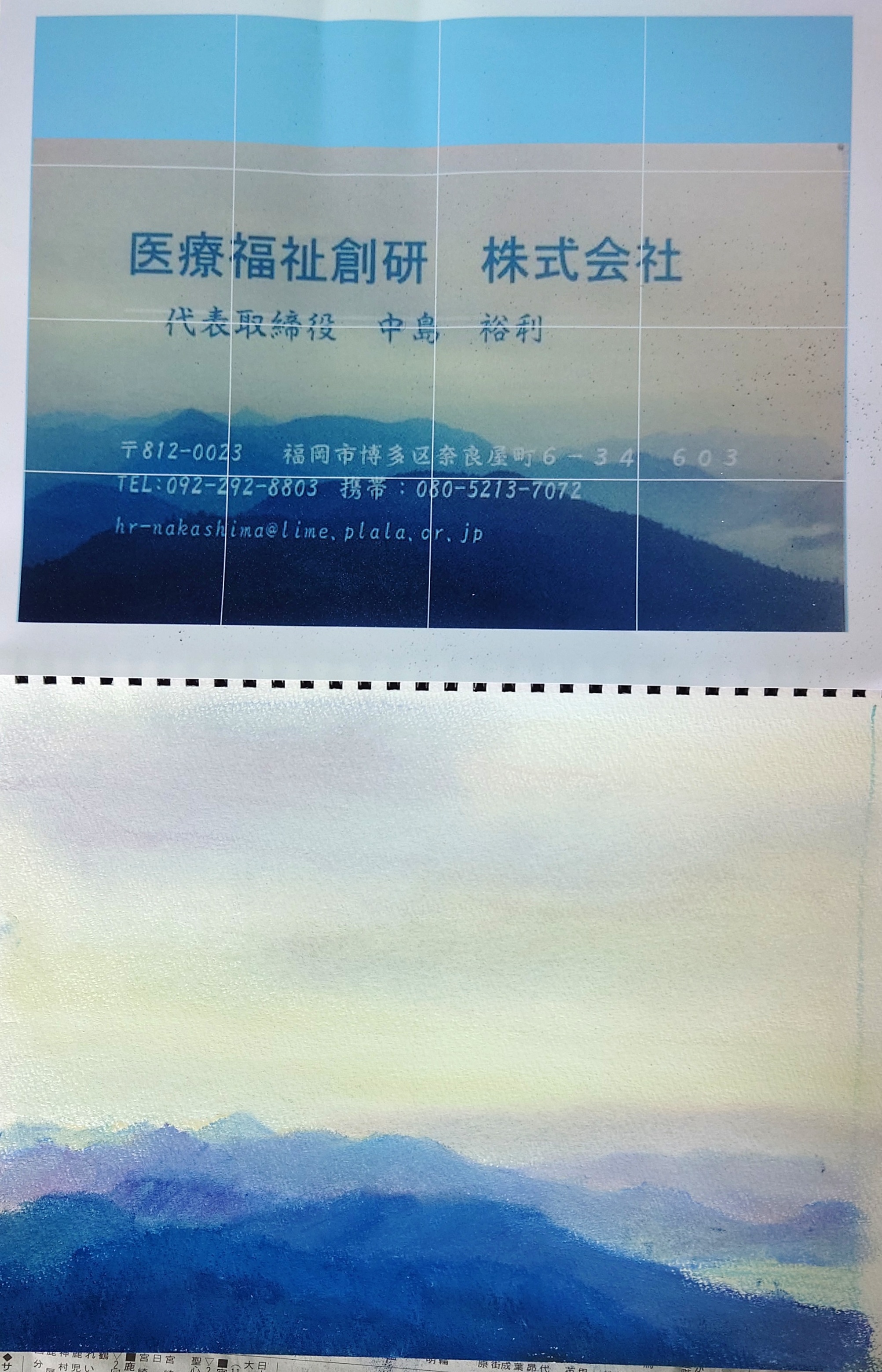 雲のバランスを考慮して広げ、また山の色は少し紫など加えておりますがいかがでしょうか。