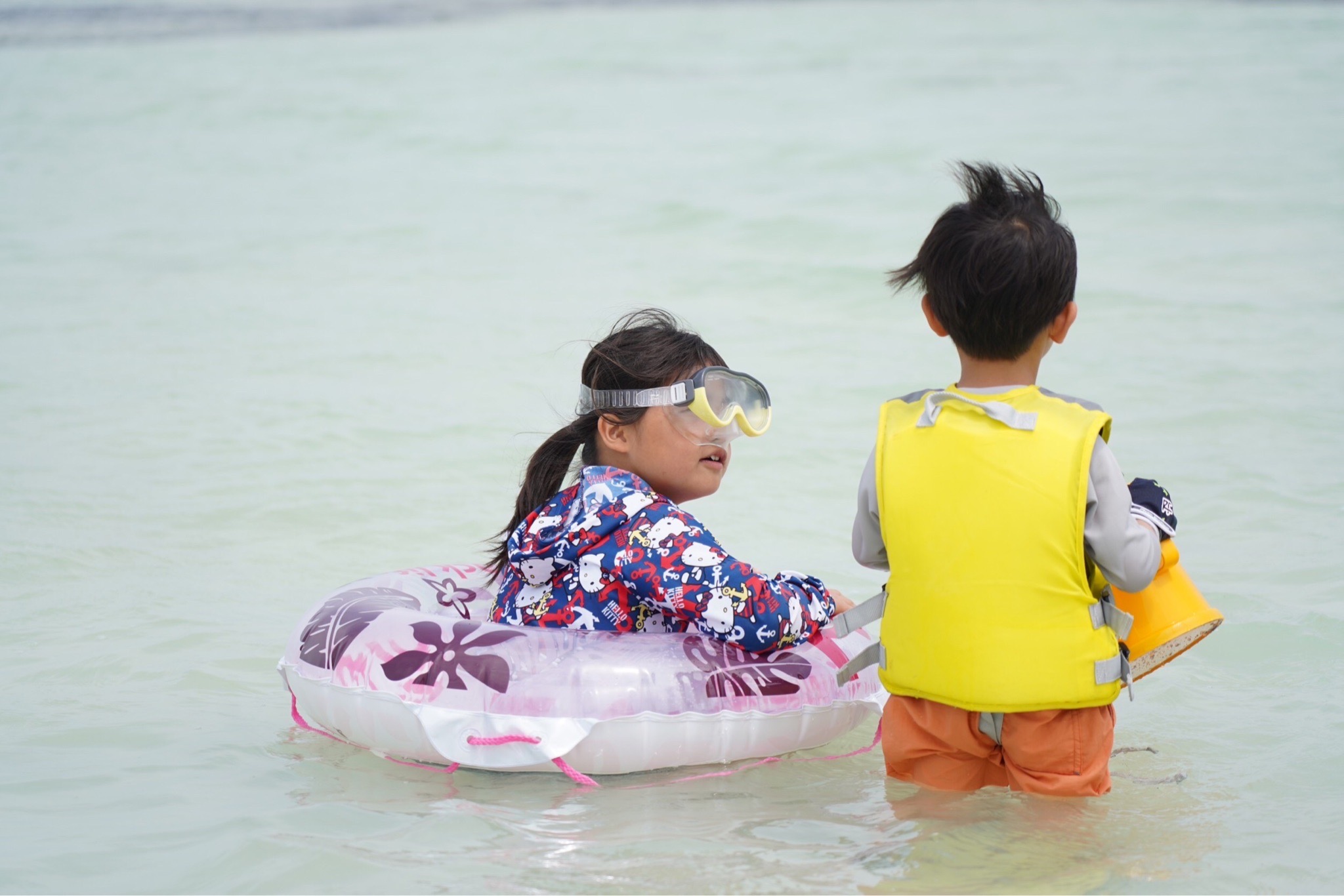 澄んだ優しいブルーグリーンの海で幸せに遊んでいるご家族を描かせていただけるのがとても楽しみです。